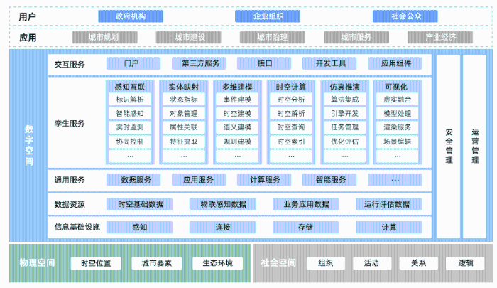 5、技术参考架构。在白皮书图一城市数字孪生概念模型基础上,本白皮书进一步从技术实现角度构建了城市数字孪生技术参考架构。