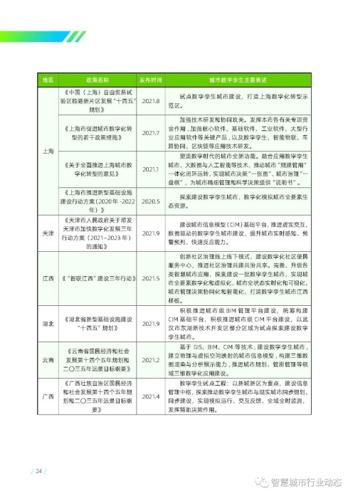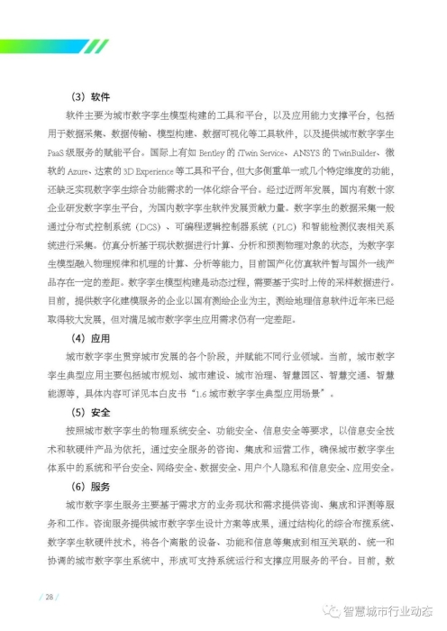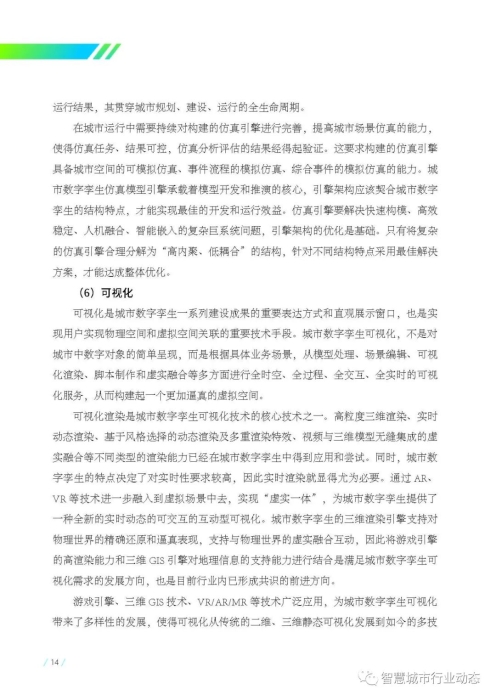 1、本白皮书在 系统研究城市数字孪生内涵、典型特征、相关方等基础上,构建了城市数字孪生技术 参考架构,并梳理了城市数字孪生关键技术和典型应用场景。