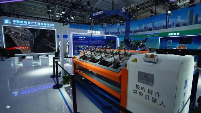 中建电力广西防城港核电项目采用我国自主知识产权的“华龙一号”技术,预埋件作为一种连接构件在核岛施工中被广泛应用,总数约12万个,总重量约为2700吨,焊接工作量巨大。项目团队自主研发预埋件焊接机器人——集与自动协调控制、工件旋转联动、防碰撞功能、清枪剪丝等功能为一体的“全能悍将”。“相比人工焊接,施工人员仅需根据不同焊接型号调整机器人工作台,即可自动化作业,保证焊接质量的同时,工作效率提升3.5倍。”中建二局副总工程师、技术中心主任胡立新介绍道。