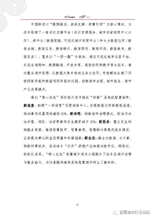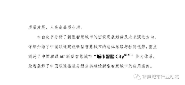 中国联通构建“城市智脑 CityNEXT”新型智慧城市能力体系,以全要素、高协同的智慧城市综合服务系统,推动城市实现高效精细新治理、惠民便民新服务、智能升级新产业和宜居绿色新生态。