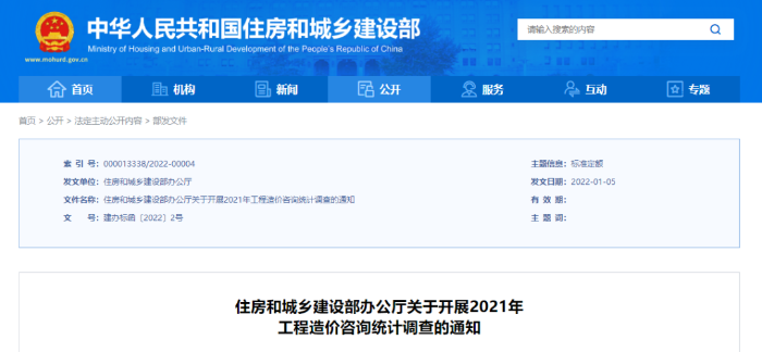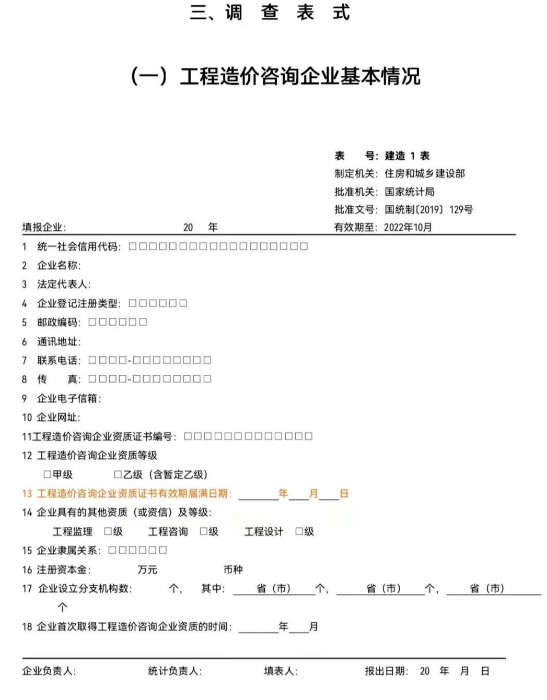 通知要求,各省级住房和城乡建设部门、国务院有关部门建设工程造价管理机构按照《工程造价咨询统计调查制度》要求,做好本地区、本行业原具工程造价咨询企业资质的企业(军队系统企业除外)统计调查工作,组织企业登录工程造价咨询统计调查系统填报2021年度数据,打印统计调查表(须加盖企业公章),于2022年3月12日前送所属省级住房和城乡建设部门、国务院有关部门建设工程造价管理机构。