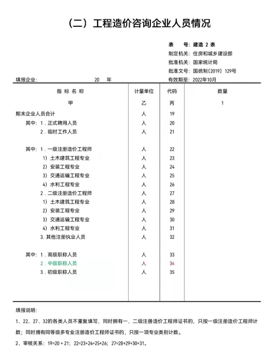 各省级住房和城乡建设部门、国务院有关部门建设工程造价管理机构及时审核工程造价咨询统计调查系统中本地区、本行业企业填报的数据,确保数据的完整性和准确性;审核完成后,通过工程造价咨询统计调查系统打印数据汇总表并加盖公章,连同2021年工程造价咨询企业统计工作总结一并于2022年3月26日前报住房和城乡建设部标准定额司。