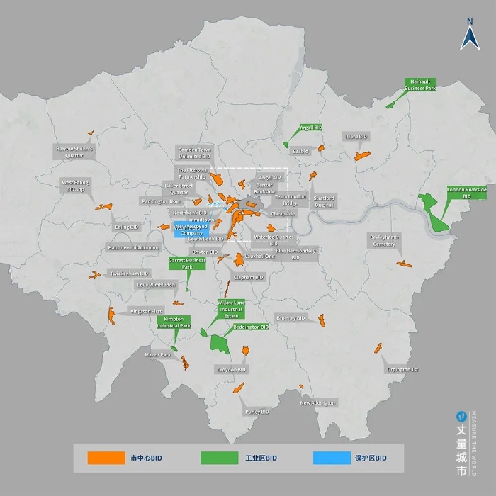 ▼ 伦敦市区BID项目分布示意