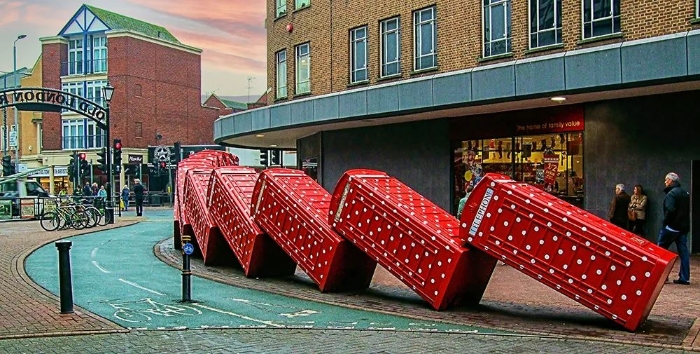▼ 道路两侧企业冠名的雕塑(来源:flickr)