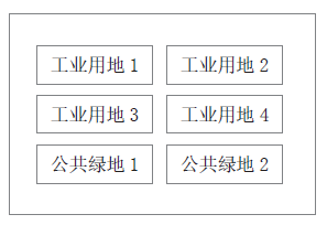 在土地出让方面,采用挂牌方式将工业用地1、工业用地2、工业用地3、工业用地4、公共绿地1、公共绿地2 及连接各个地块的道路整体进行出让,同时限制竞买人资格及产业门槛,可明确移交政府一定比例的产业用房、绿地、道路及其他配建物业等( 图1)。对于新增用地供给产业发展平台类管理模式,需考虑市场主体的合理利润和市场经营,在分割转让方面,一般允许50%的分割转让比例。