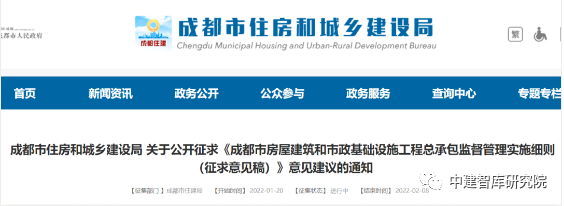 日前,成都市住建局公开征求《成都市房屋建筑和市政基础设施工程总承包监督管理实施细则(征求意见稿)》意见建议。