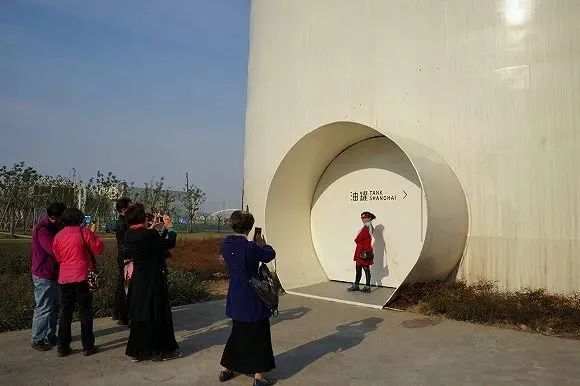 游客在上海油罐艺术中心拍照打卡。图片来源:视觉中国