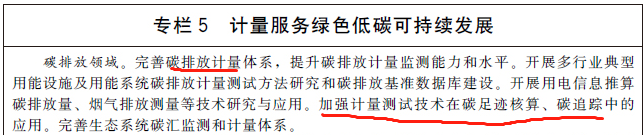 完善温室气体排放计量监测体系,加强碳排放关键计量测试技术研究和应用,健全碳计量标准装置,为温室气体排放可测量、可报告、可核查提供计量支撑。