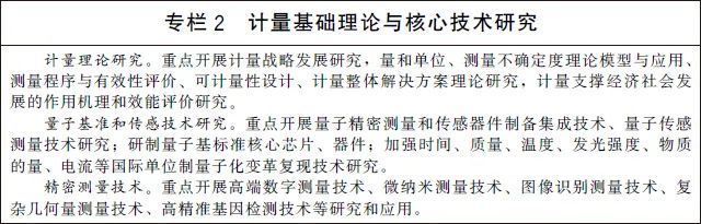 (四)加强计量基础和前沿技术研究。加强计量学基础理论和核心技术的原始创新。实施“量子度量衡”计划,重点研究基于量子效应和物理常数的量子计量技术及计量基准、标准装置小型化技术,突破量子传感和芯片级计量标准技术,形成核心器件研制能力。研究人工智能、生物技术、新材料、新能源、先进制造和新一代信息技术等领域精密测量技术。开展测量不确定度、测量程序与有效性评价、计量作用机理和效能评价等理论研究。