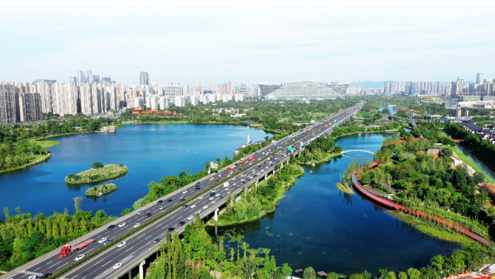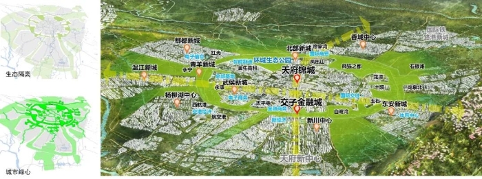 按照公园城市“园中建城、城中有园、城园相融、人城和谐”的理念,围绕环城生态公园优化空间组织模式,形成城绿交融的嵌套式、组群化布局,把城市放在美丽的大自然中,实现从“背园发展”到“拥园发展”。