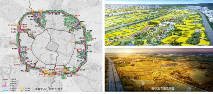 (1)推动土地综合整治,强化耕地保护。耕地是环城生态公园的重要组成部分,规划创新以土地综合整治为抓手,小田并大田,统筹耕地保护、生态修复和公园场景营造。严格保护永久基本农田,通过既有耕地周边实施建设用地、非耕农用地和未利用地复垦复耕,实现耕地数量有增加、质量有提升、生态有改善,形成规模化的高标准农田区。同时,以“农为底、景相融”的理念,营造多种新型农业场景,丰富农业景观内涵,提升农田的经济价值和景观价值。