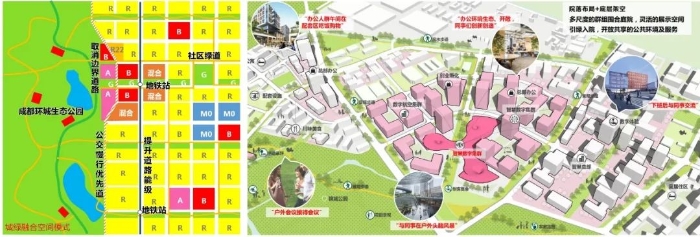 (4)塑造高低错落、疏密有致的城园融合空间形态。强化城市设计,临绿界面宜以社区商业、生活服务等低层公共建筑为主,后排布局多层和高层建筑,并以高层商务塔楼作为背景层,塑造环城生态公园两侧错落通透的建筑形态;突破建筑围合,推动“公园-街道-建筑-公共空间”一体化设计,营造品质宜人的开放空间场景。