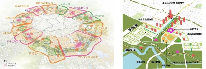(1)以环城生态公园为牵引,培育城市中心体系。以网络化生态格局构筑的高品质城园融合发展空间为重要载体,引导城市重大公共功能在环城生态公园周边差异化统筹分布,形成多个相互关联、融合引领的城市级中心、片区中心。