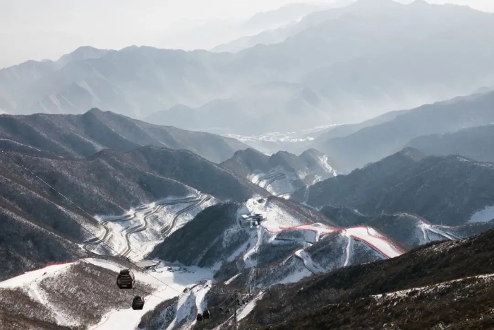 ▲ 从赛道出发区俯瞰竞速雪道、中间平台、竞技结束区