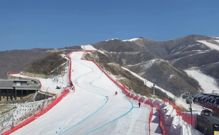 国家高山滑雪中心共设3条竞赛雪道、4条训练雪道以及其他联系雪道和技术雪道,各类雪道总长度约为23.1km,最大垂直落差约925m。赛区内设置竞速与竞技2个结束区,是服务赛事的核心区域,具备竞赛终点、观众观赛、赛事组织、交通集散等多种功能,2个结束区以道路、索道及雪道相连。以往国际赛事雪道多按男子与女子技术难度不同,分设2条比赛主雪道,国家高山滑雪中心雪道设计以竞速与竞技项目划分为2条主雪道,另加1条团体赛道,在滑降雪道中段设置了足够的空间便于滑行线路的调整,以适合男子女子共用1条雪道滑行,满足各项比赛的要求。