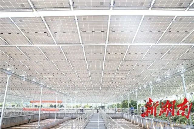 该项目在水池上方加盖光伏发电板,降低了处理污水的温度,延缓池内藻类生长,提高了污水处理效率,进一步节约了生产成本,一举多得。