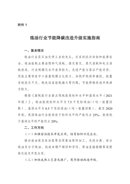 附件:1. 炼油行业节能降碳改造升级实施指南