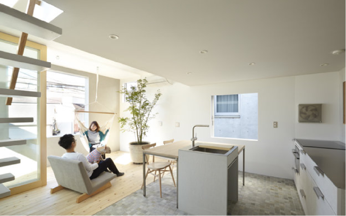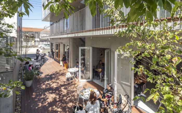 东京大田区上池台一座私家住宅的一层开辟出了一个面向街道的半开放式公共空间,可作为咖啡屋、书屋、小型餐厅使用。附近社区的居民都可以到这里来喝咖啡,看书,聊天。这个小小的公共空间使邻近的居民建立了一种良好的社区关系,也让所在的街区变得更加温馨而富有生机。
