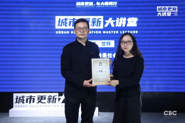 1月6日,由CBC建筑中心发起的城市更新大讲堂邀请设计学者、北京国际设计周策划总监曾辉先生作为第十讲的主讲嘉宾,就“城市更新的本质是社会创新”发表了主题演讲,分享他在运用社会创新设计的方法解决城市问题,塑造城市的文化美学氛围,推动历史街区再生方面的思考、观察与实践。 演讲结束后,曾辉先生受聘成为CBC首席城市美学专家,CBC城市更新研究院院长柳青女士为曾辉先生颁发了聘书。