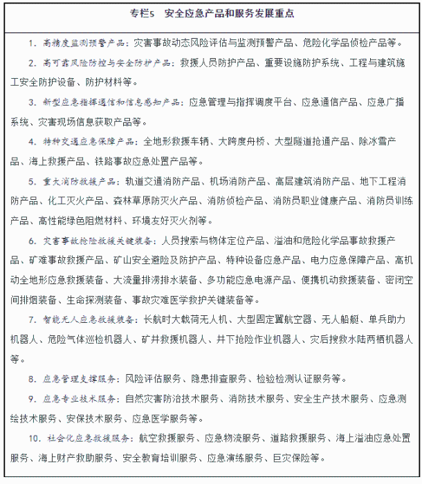 优化产业结构。以市场为导向、企业为主体,深化应急管理科教产教双融合,推动安全应急产业向中高端发展。采用推荐目录、鼓励清单等形式,引导社会资源投向先进、适用、可靠的安全应急产品和服务。加快发展安全应急服务业,发展智能预警、应急救援救护等社区惠民服务,鼓励企业提供安全应急一体化综合解决方案和服务产品。