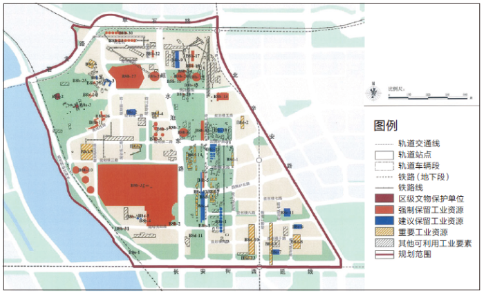 图1 首钢园区文物保护和保留工业资源规划图/北京市规划院