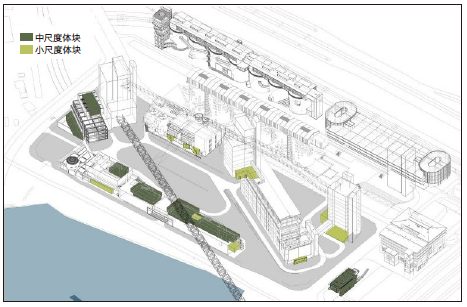 可见,在工业遗存更新中,设计总需要直面两种变革性的重构:变工艺流程导向决定的工业布局为人性化生活导向下的城市布局,以及变工业巨尺度关系为“巨 + 中 + 小”尺度聚合的人性化尺度关系。