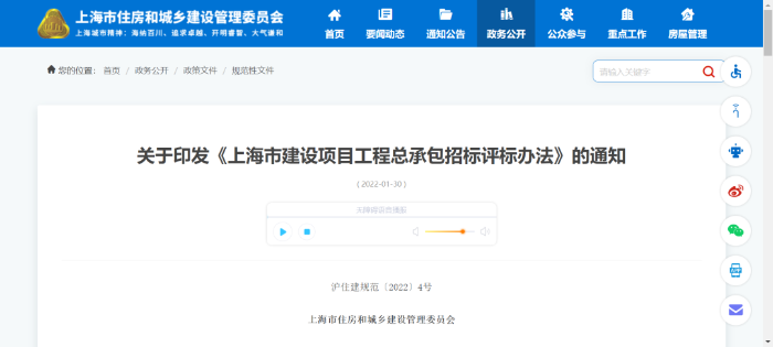 根据2017年1月1日开始实施的《上海市工程总承包试点项目管理办法》(以下简称《试点办法》),制定了《上海市工程总承包招标评标办法》(沪建建管〔2018〕808号,以下简称《评标办法》),并于2019年1月1日起施行,有效期为2年。