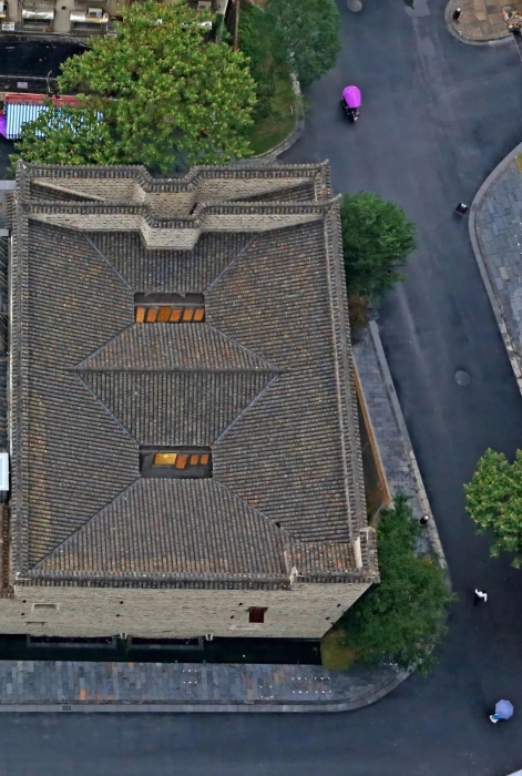 ▲ 被保留的两棵老树与被挑出屋盖保护的老城墙
