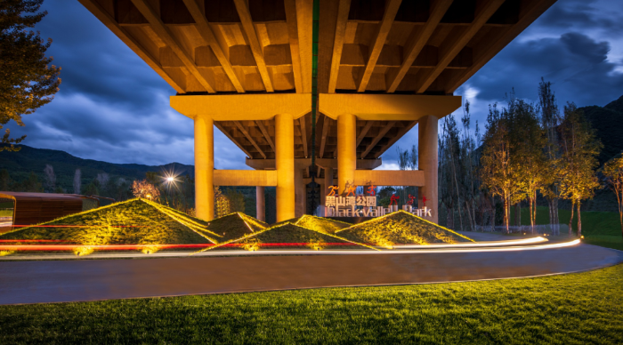 景观空间品质提升——立足生态斑块破碎、公共开放空间缺失、工业用地拆迁后再利用、地域特色模糊等城市问题,通过重塑青山相夹、碧水掩映、绿树葱茏的自然生态基底,激活发展受阻、人气不足的商业街区,延续崇礼当地窑洞与民居民巷的人文乡土记忆,点亮崇礼门户与城市重要景观节点,引进太阳能光伏、3D打印等高新技术,呈现出生态友好的人居环境和城景相融的整体风貌。