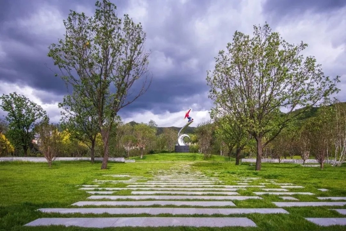 当驱车行至张承高速崇礼南出口,沿匝道进入崇礼主城区,一幅层峦耸翠、湖光潋滟的秀美画卷在眼前徐徐展开。青山上云杉葱郁、白桦舒朗,原址保留的窑洞里回响着故土的耳语;绿水间碧波荡漾、叠瀑喧哗,公园的跑道上洋溢着孩童的欢笑。“雪国崇礼·户外天堂”八个大字恰如画卷的题注,书写于山水之间。