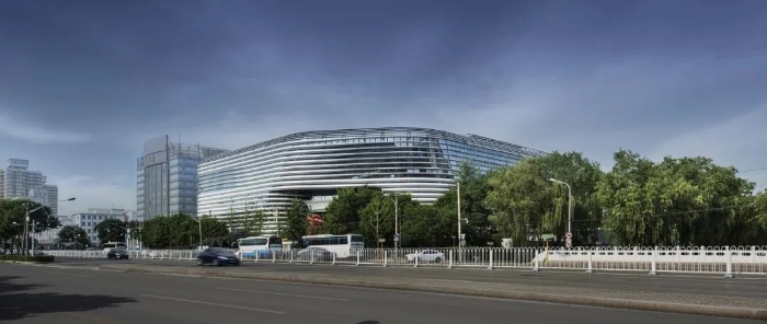 的确,除了历史古迹之外,“冰坛”还与众多不同时代的著名建筑相邻,比如首都体育馆和国家图书馆等等。如何在不要太过“张扬”的同时,又体现出新时代的风貌与冰雪的内涵,并不是个容易的任务。