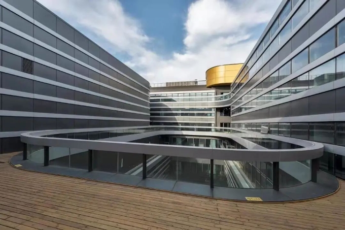 “理疗康复区域则需要宁静,我们就采用了蓝色、紫色等颜色。这样整个建筑外观是银灰色,比较沉稳,符合城市的气质,但内部其实又有各色丰富的空间存在。”