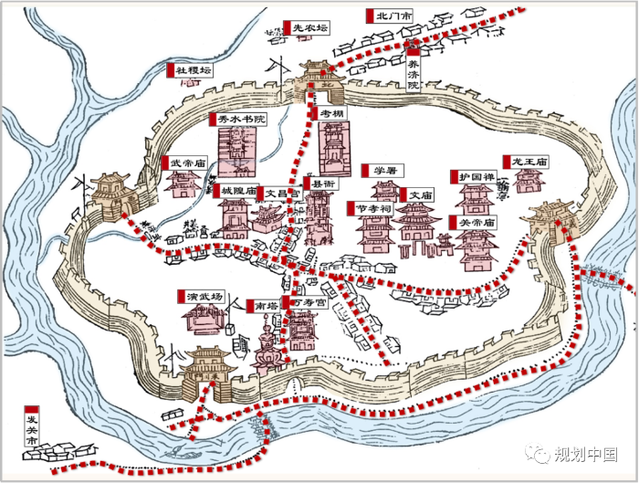 从老城自身来看,我国大部分老城的传统空间格局要素呈现“碎片化”状态,要修补、强化老城在特定自然人文环境中长期演化形成的稳定空间结构特色。这种思路不同于部分城市在老城里大规模拆真建假、整体复古、甚至恢复到某个历史时期的错误做法,而是要根据现代生产生活需要不断更新提升,但所有的更新干预都要顺应、延续和强化,而不是异化、割裂甚至扭曲老城的传统空间结构。