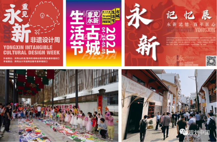 结合规划确定的功能定位,在保护更新一期工程完成后,CBC建筑中心组织各方力量在永新老城举办了非遗设计周,包含非遗、设计、美食、花艺四大主题板块,共有70余名知名策展人、设计师、传承人参与其中。并形成了以展代招、以展代建的新模式,以非遗设计周为起点,永新老城持续引入高端设计、文化、艺术从业人群,持续提升相关业态,不断释放市场消费潜力。通过大型事件活动,弘扬当地特色文化、提升空间艺术美感,让文化渗透到日常生活。
