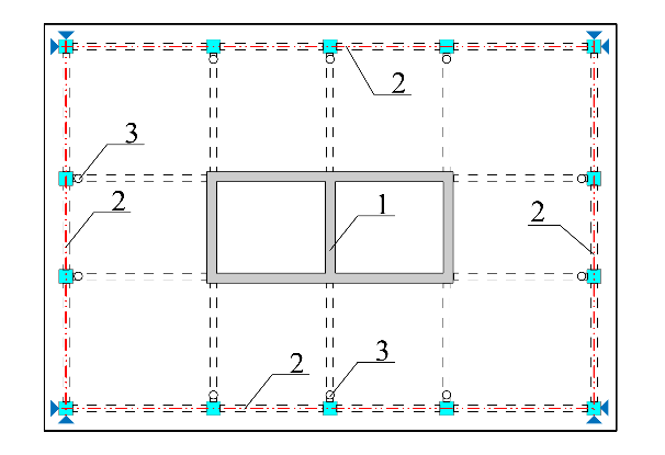 1—压接装配框架(标准层);2—抗震墙;3—现浇框架