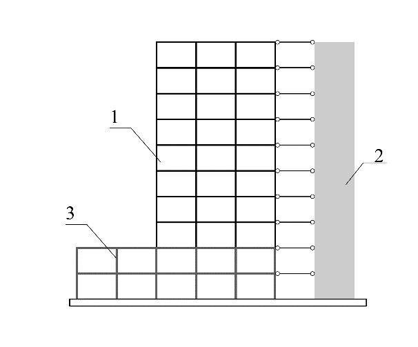 1—抗震墙;2—压接装配框架;3—铰接连接