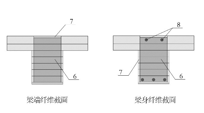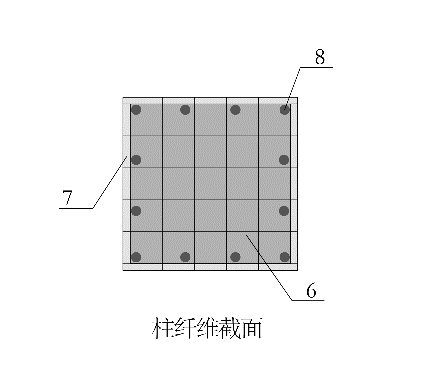 1—纤维梁柱单元;2—刚臂;3—梁端纤维单元;4—预应力筋单元;5—耗能钢筋单元;6—约束混凝土纤维;7—普通混凝土纤维;8—钢筋纤维