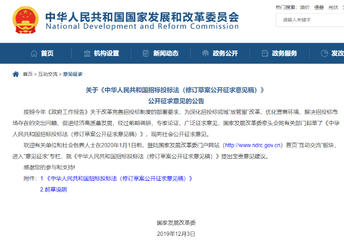此后发布的《中华人民共和国招标投标法(修订草案公开征求意见稿)》明确: