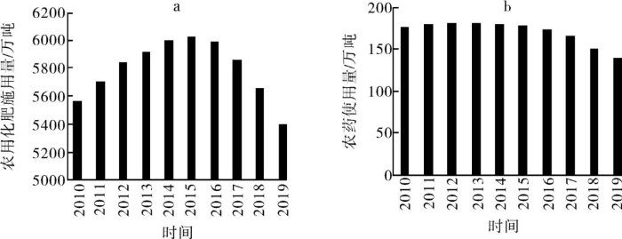 图1 2010-2019年我国化肥(a)、农药(b)投入变动情况