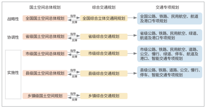 图1 国土空间总体规划、综合交通规划和交通专项规划的对应关系示意图