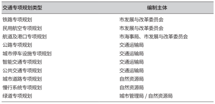 表1 市级各类交通专项规划的编制主体