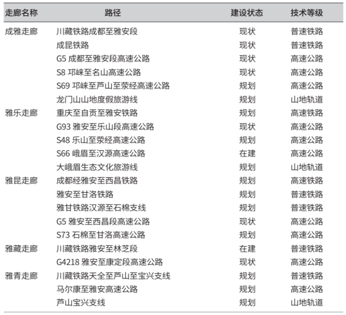 表 2 雅安市对外综合交通运输走廊一览