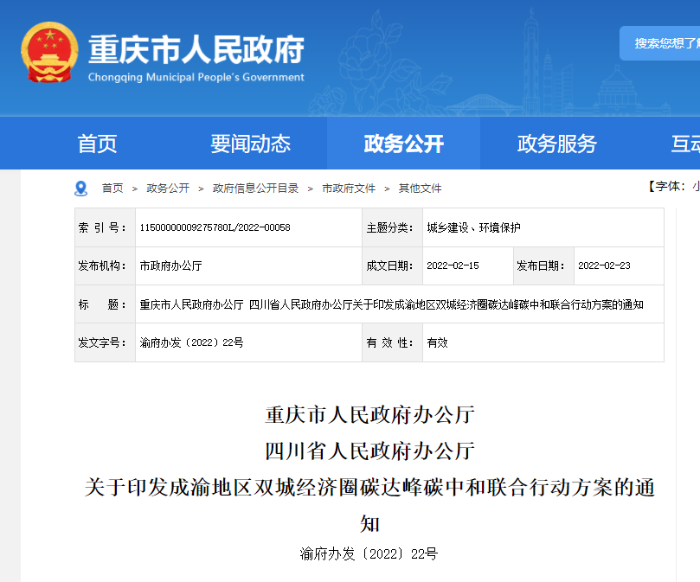 成渝地区双城经济圈碳达峰碳中和联合行动方案