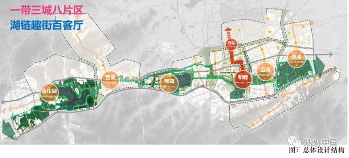 总体城市设计视角+服务于城市形象构建+全域魅力景观格局理念+实际上的生态廊道与绿道建设
