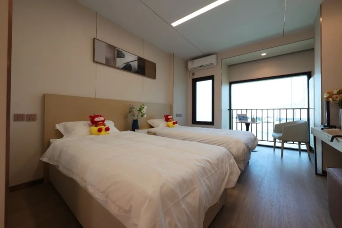 △ 采用模块化建造方式实现零湿作业、零污水排放、零材料损耗的中国最高、最大的模块化建筑北京亦庄蓝领公寓