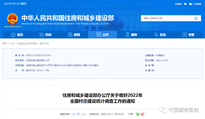 为推进实施乡村建设行动,日前,住房和城乡建设部办公厅印发关于做好2022年全国村庄建设统计调查工作的通知。