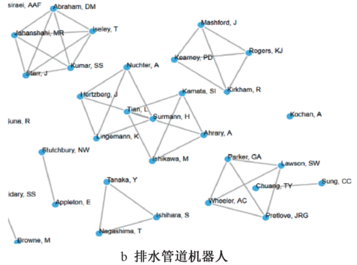 图1 管道机器人及排水管道机器人作者合作关系网络