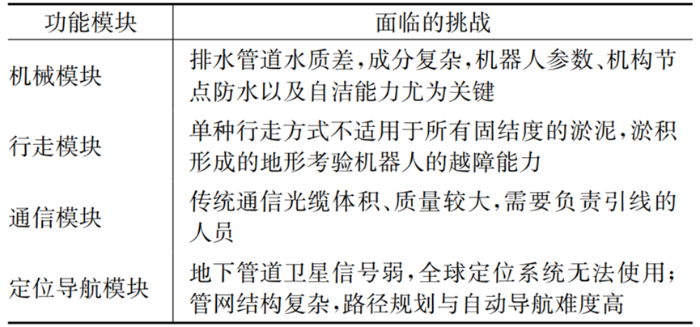 表4 排水管道机器人面临的挑战