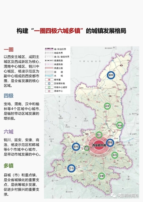 2021年9月28日,发布的《陕西省国土空间规划(2021-2035年)》中,明确陕西将构建“一圈四极六城多镇”的城镇发展格局。其中,“一圈”就是以西安主城区、咸阳主城区及西咸新区为核心, 渭南中心城区、铜川中心城区、杨凌示范区为副中心组成的西安都市圈,是全省发展的核心区域。