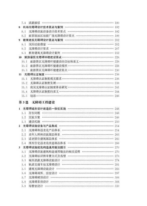 教材针对在建设工程中涉及的无障碍主要工程问题进行了系统的阐述,强调了无障碍作为一个系统环节,贯穿于设计、施工、运行的全过程,“一体化”实施对把控无障碍的完整性、体系性有着重要意义,合规的设计是基础,优秀的施工精度和质量是保障,也是建设工程中容易出现隐患的环节。